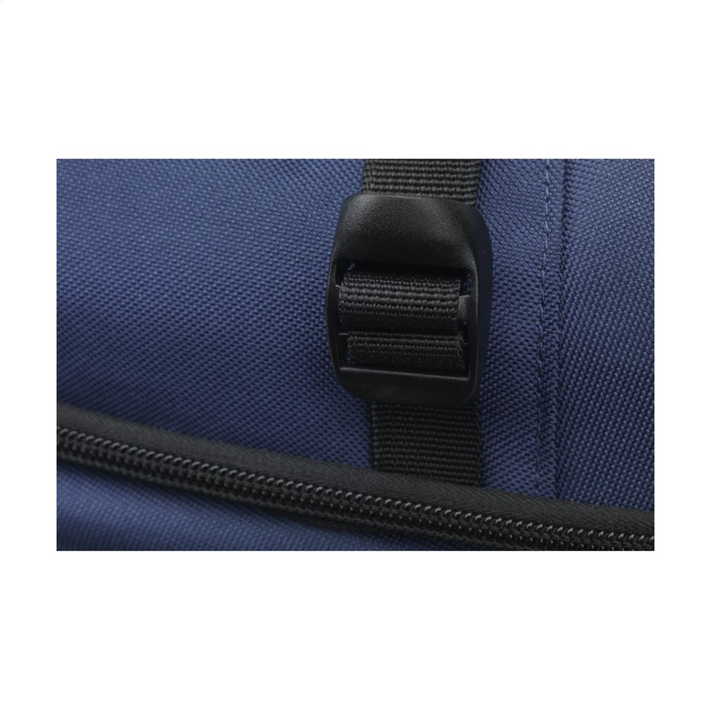 Rugzak van stevig RPET polyester. Een smal model met een royaal compartiment met ruimte voor het...meer