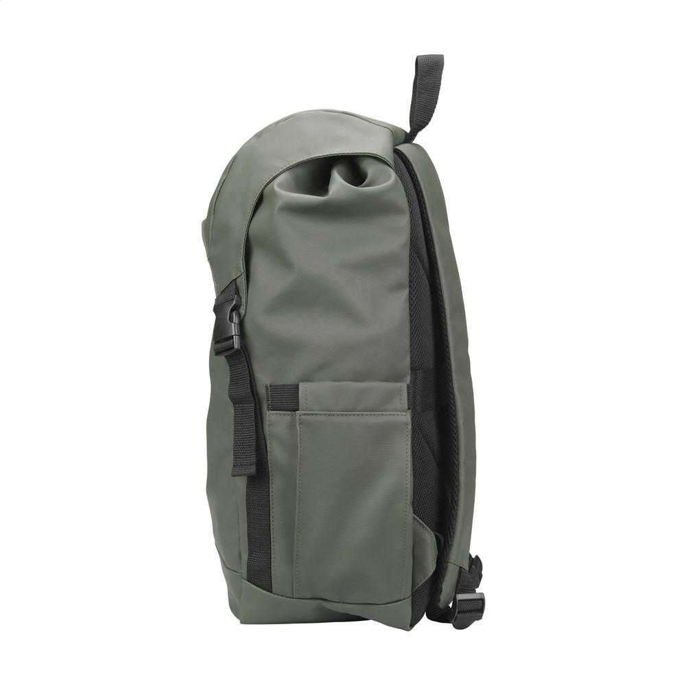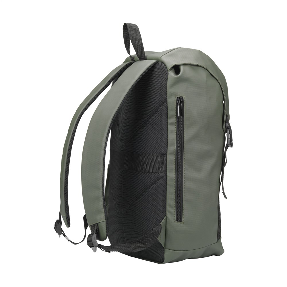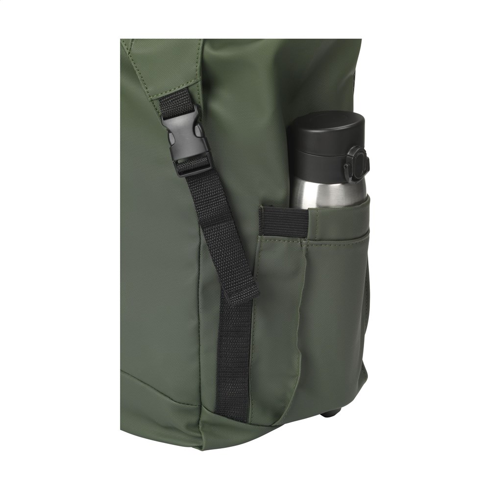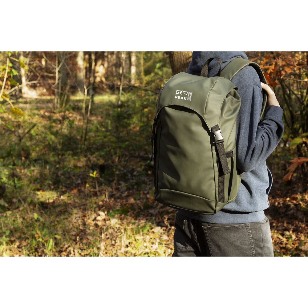 Zeer ruime rugzak van soepel, waterafstotend, 100% gerecycled polyester. Deze rugzak beschikt over een zeer ruim hoofdvak met een apart laptopvak (tot 15,6 inch), een extra ritsvak aan de zijkant en een vak voor een drinkfles. De verstelbare schouderriemen en de rugzijde zijn voorzien van ademend gaas en foam voor extra draagcomfort. Keurig afgewerkt en gevoerd met 100% gerecycled 210D polyester. Voorzien van een trekkoordsluiting en overslag met kliksluitingen en een reflecterend accent voor zichtbaarheid in het donker. Perfect als sporttas, met voldoende ruimte voor kleding en schoenen maar ook ideaal als reistas of schooltas. GRS-gecertificeerd. Inhoud ca. 20 liter.