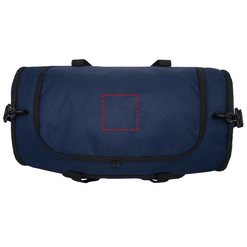 Duurzame duffel bag gemaakt van 100% gerecycled, van consumenten afkomstig plastic dat bijdraagt aan de vermindering van plastic afval. Met groot hoofdvak en voorvak met ritssluiting, gevoerde schouderriem en gevoerde handgrepen. Er worden ongeveer 27 flessen gerecycled om deze tas te maken.