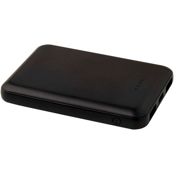 Powerbank met slank en elegant ontwerp en Type-C in/uitgangspoort en 2 x USB-A-poorten waardoor drie apparaten tegelijkertijd kunnen worden opgeladen. De powerbank heeft een 5000 mAh lithium-polymeerbatterij die een totaal uitgangsvermogen levert van max. 10 W. Deze powerbank is gemaakt van 23% RCS gecertificeerd gerecycled plastic. Geleverd met een TPE Type-C naar USB-A-oplaadkabel.