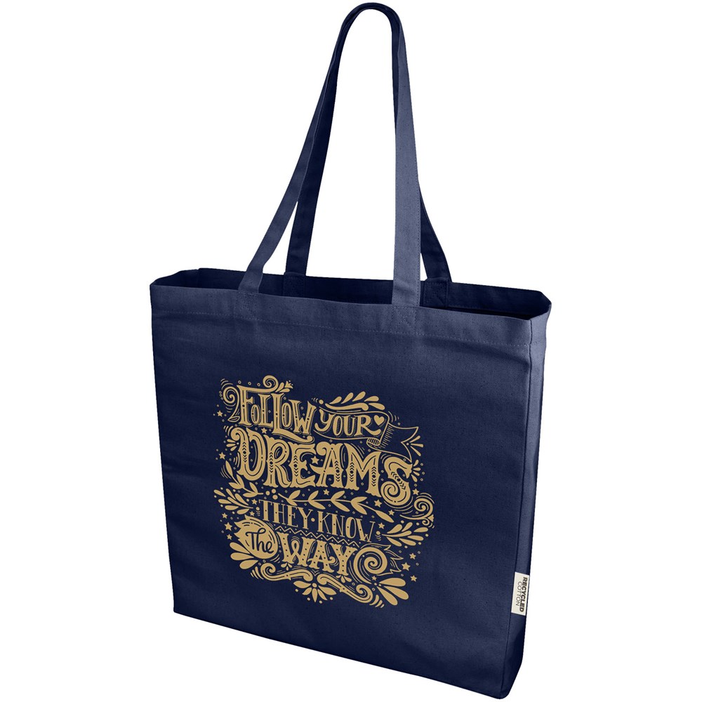 De Odessa totebag, gemaakt van 100% GRS-gerecycled katoen, is ontworpen voor comfortabel gebruik dankzij de 30 cm lange schouderhengsels en het ruime hoofdvak met vouwbodem. Of het nu is om zware boeken of boodschappen te dragen, deze tas voldoet aan alle wensen. De drukmethodes die voor deze tas beschikbaar zijn, zijn eveneens GRS-gecertificeerd, waardoor de hele toeleveringsketen transparant en gecertificeerd is. Het katoen van 220 g/m² zorgt voor duurzaamheid en betrouwbaarheid, met een draagvermogen tot wel 10 kg. Gemaakt in India. Inhoud: 13 liter.