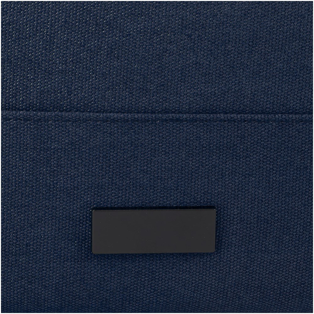 De Joey retail-geïnspireerde rolltop rugzak is samengesteld uit GRS gerecycled canvas en GRS RPET voering. Deze rugzak beschikt over een speciale sleeve voor een tablet en een gevoerd compartiment voor een 15" laptop. Daarnaast heeft de rugzak 2 zijvakjes voor waterflessen en een grote ritszak aan de voorkant, evenals een ritsopening met rolltop voor maximale opslag en veiligheid. De 2 versterkte webbing-handvatten maken het gemakkelijk en comfortabel om de rugzak als een zakelijke draagtas mee te nemen. De decoratieve metalen plaat zorgt ervoor dat een logo mooi tot zijn recht komt door zijn subtiele en matte afwerking.