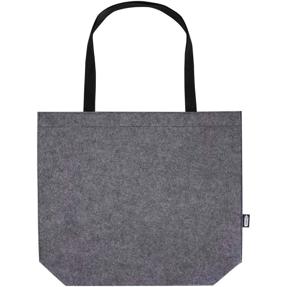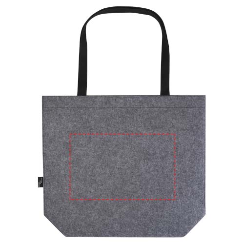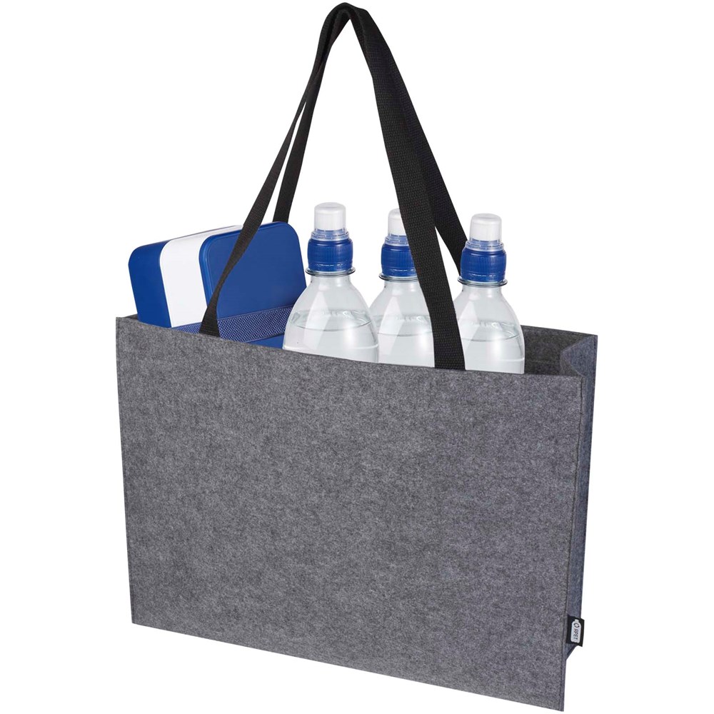 Grote draagtas met inzetstuk van zacht en duurzaam hoogwaardig GRS-gecertificeerd gerecycled vilt. De tas heeft een groot hoofdvak met veel ruimte (tot 20 liter), verstevigde geweven katoenen handvatten (30 x 2,5 cm) voor optimaal draagcomfort en een sluitknop aan de bovenkant.