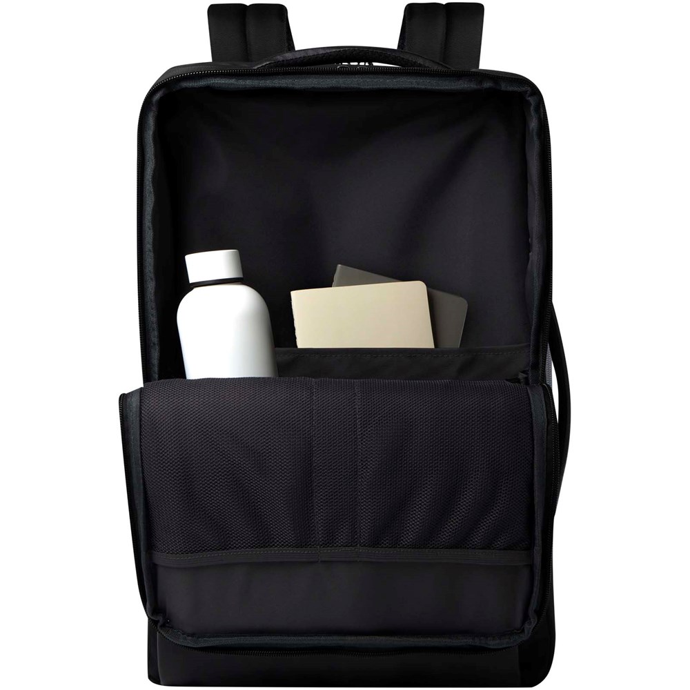 De uitbreidbare en stevige GRS gecertificeerde Expedition Pro laptoprugzak is de ultieme keuze voor professionals die voortdurend moeten jongleren tussen reizen en werk. De rugzak heeft een grotere capaciteit die vergelijkbaar is met die van een handbagagekoffer en is gemaakt van waterafstotend RPET, gecombineerd met hoogwaardige PU-elementen en RPET-voering. Hij beschikt over een speciaal 17" laptopvak en een tablethoes, een uitbreidbaar compartiment in trolleystijl voor het opbergen van kleding, een geïntegreerd lekvrij groot vak voor toiletartikelen en een ruim voorvak met meerdere organisatorische vakken binnen en buiten. Gemaakt met gewatteerde en verstelbare schouderbanden, een geïntegreerd vak voor pasjes, een lus voor een zonnebril, een voorgevormde luchtgaas achterkant en een gewatteerde handgreep, voor maximaal draagcomfort en gemak. Inhoud: 35 liter. PVC-vrij.