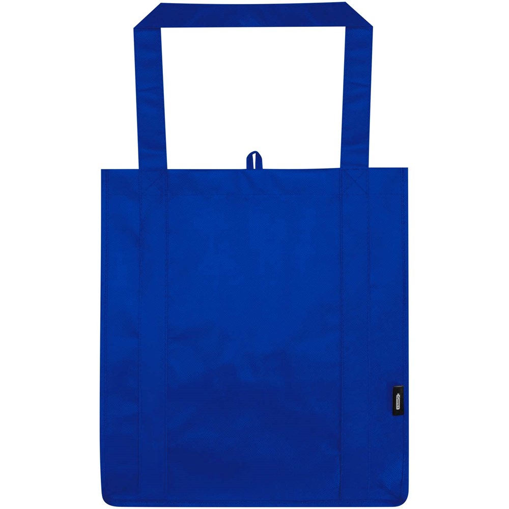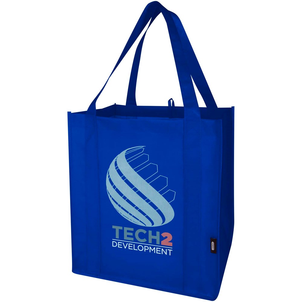 Gemaakt van duurzaam en scheurbestendig niet-geweven RPET. De Liberty GRS gecertificeerde gerecyclede draagtas beschikt over een ondersteunende bodem, waardoor hij veelzijdig en stevig is. De draagtas heeft een groot hoofdvak en 25 cm lange handvatten. Inhoud: 29 liter. Geschikt voor een gewicht tot 12 kg.