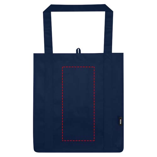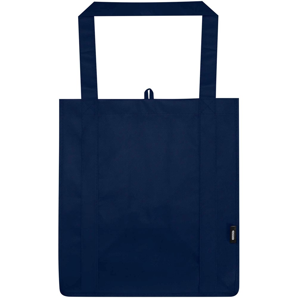 Gemaakt van duurzaam en scheurbestendig niet-geweven RPET. De Liberty GRS gecertificeerde gerecyclede draagtas beschikt over een ondersteunende bodem, waardoor hij veelzijdig en stevig is. De draagtas heeft een groot hoofdvak en 25 cm lange handvatten. Inhoud: 29 liter. Geschikt voor een gewicht tot 12 kg.