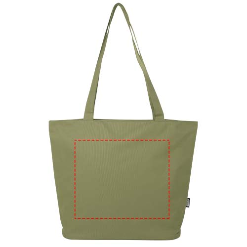 Gemaakt van waterafstotend 600D RPET, is de Panama GRS gerecycleerde zippered tote bag een perfecte multifunctionele tas voor evenementen, naar het strand of voor boodschappen. Het heeft een hoofdcompartiment met rits en een binnenzak met rits die groot genoeg is om je telefoon en andere waardevolle spullen in op te bergen. De handvatten zijn 34 cm lang, waardoor de tote bag gemakkelijk over de schouder te dragen is. Draagvermogen tot 10 kg. PVC-vrij.