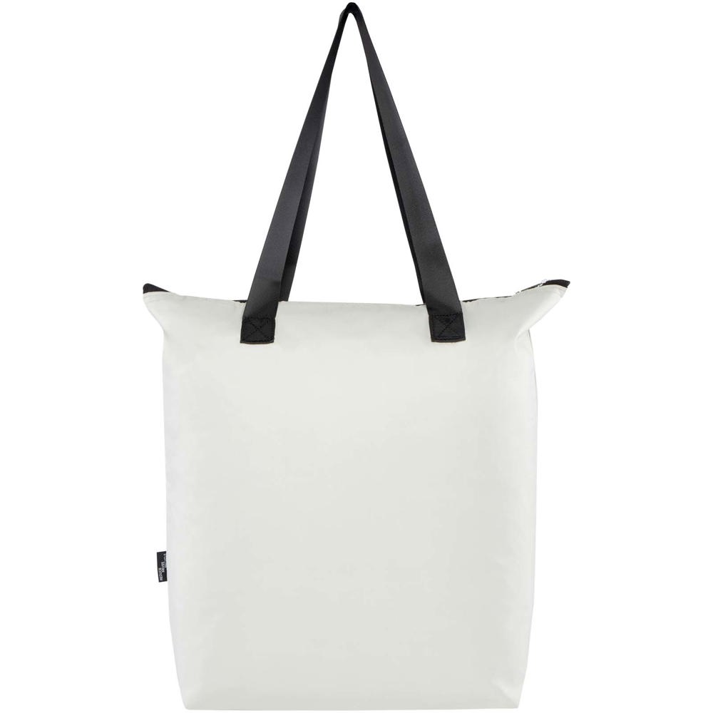 Deze lichtgewicht maar duurzame draagtas is ontworpen voor gemak en bruikbaarheid die zich naar behoeften aanpast. Je kunt hem netjes opvouwen tot een compact tasje met een lus voor gemakkelijk ophangen of dragen. Hierdoor is deze perfect voor picknicks, boodschappen doen of avonturen buitenshuis. Met een hoofdcompartiment met rits en aluminiumfolie, een open vak aan de voorkant en twee lange handgrepen van glad geweven kwaliteitsmateriaal. Gemaakt van pvc-vrij gerecycled polyester. Inhoud: 15 liter.