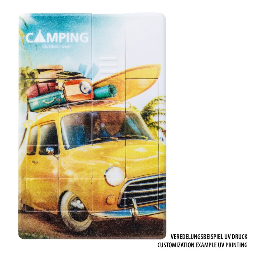 Deze puzzel met geïntegreerde USB-stick kan over het hele oppervlak worden voorzien van een UV print. Maak uw logo