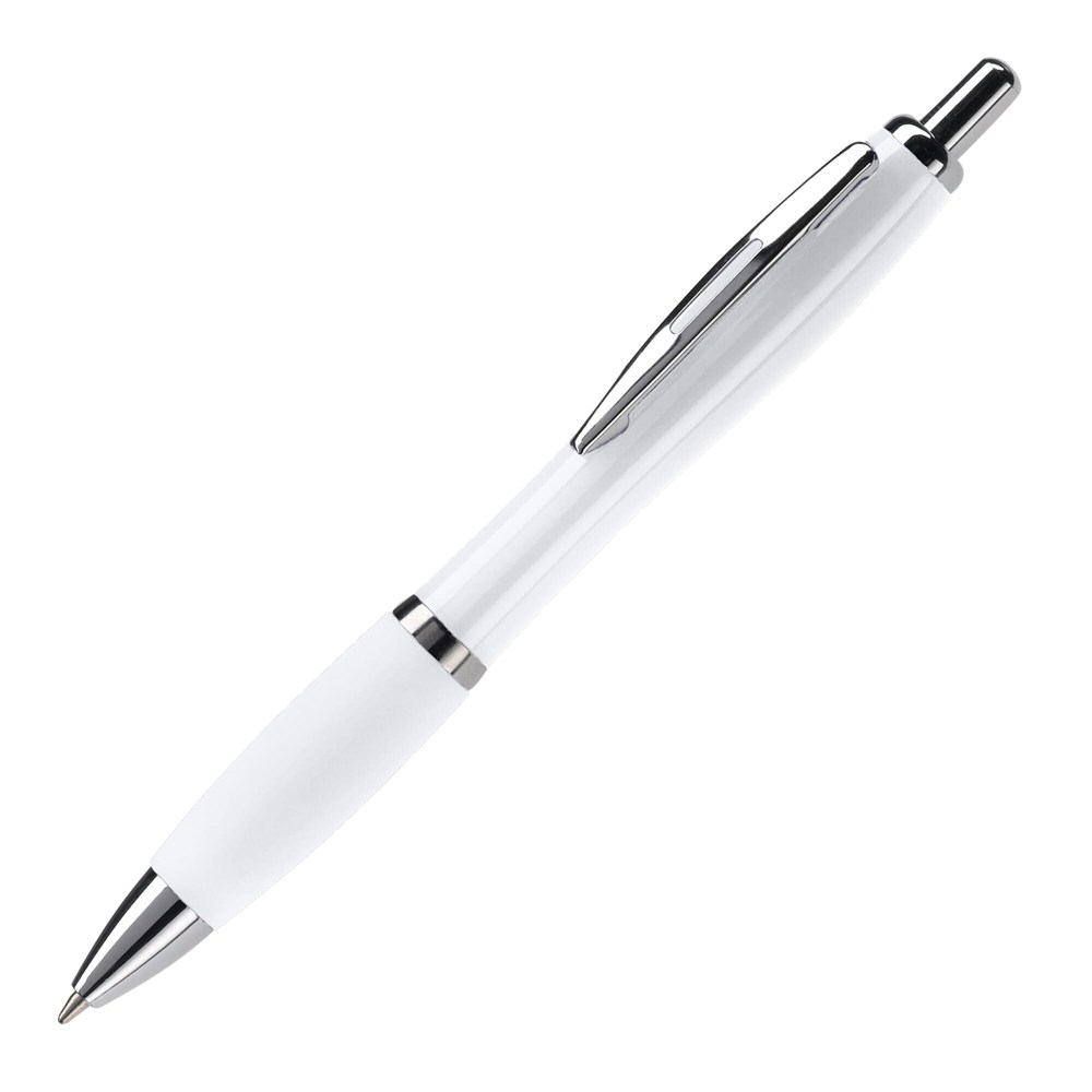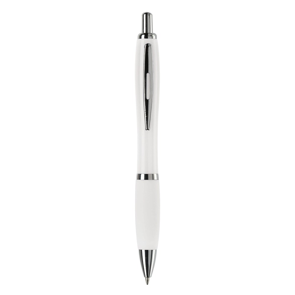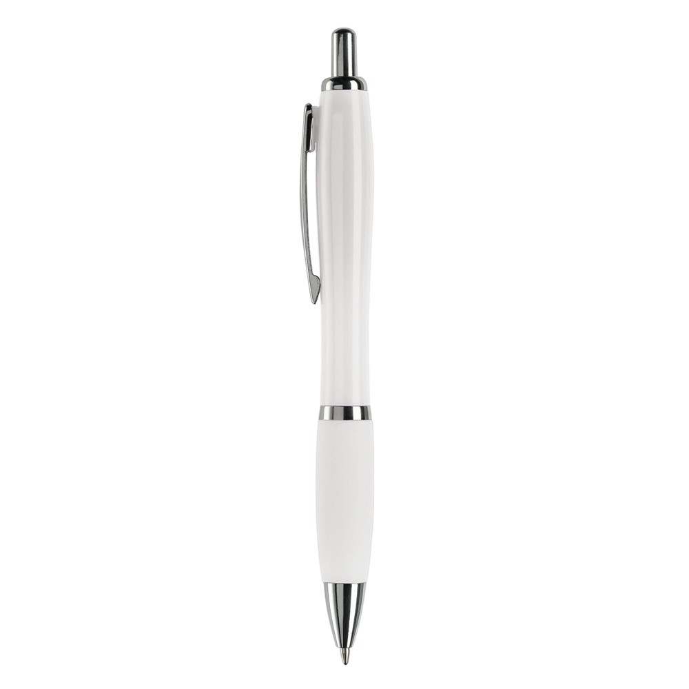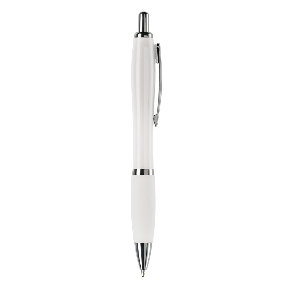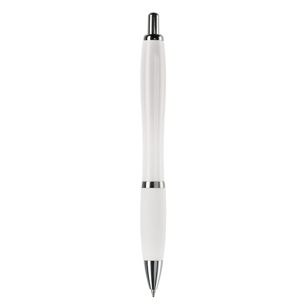 Hardcolour balpen met metalen clip, metal look drukknop, tussenring en penpunt. De pen bevat een blauwschrijvende Jumbo vulling. Vanaf 10.000 stuks andere kleurcombinaties mogelijk.