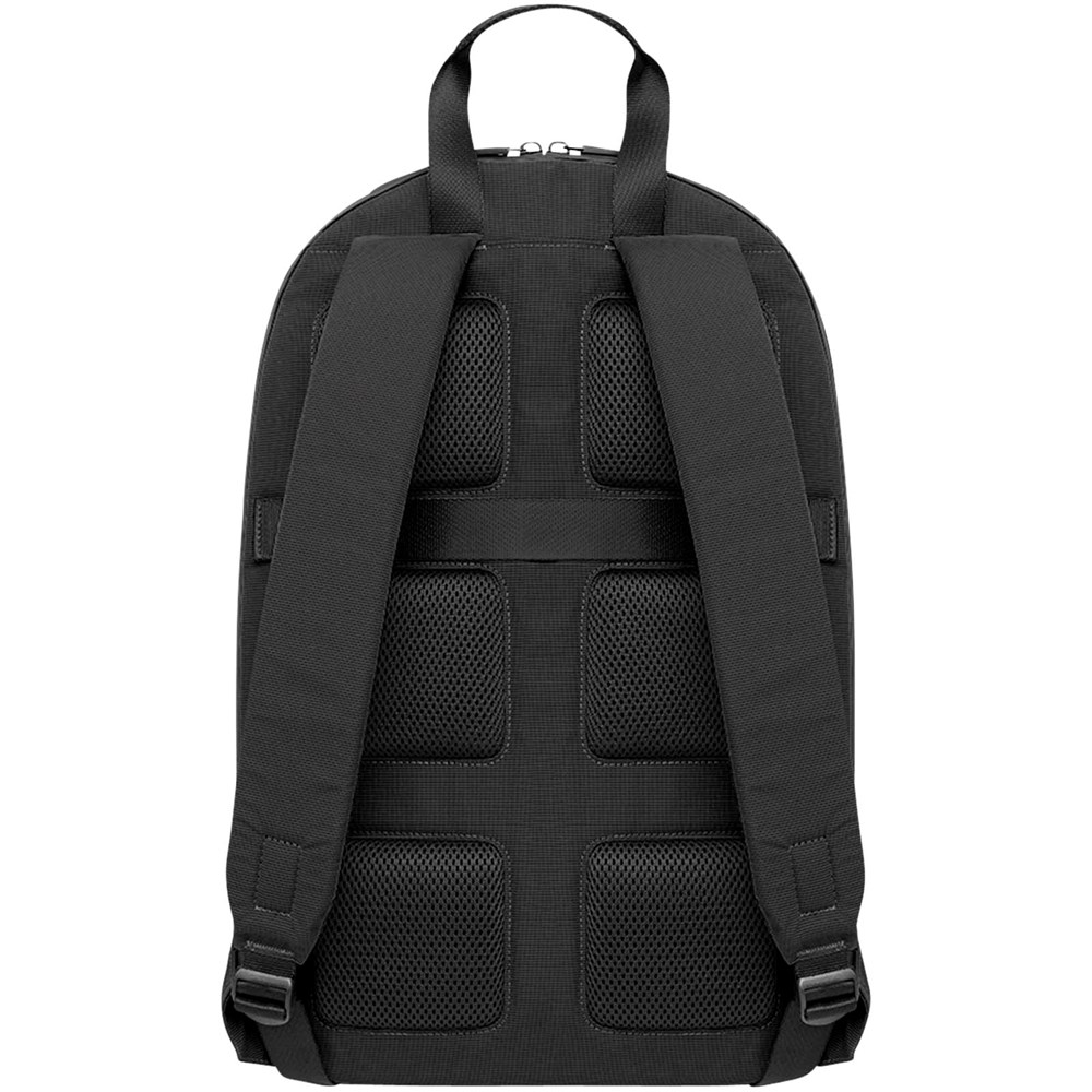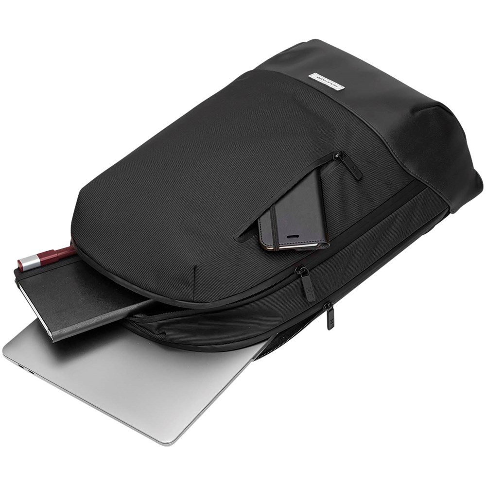 De Metro rugzak is ideaal voor de mobiele werkplek, met een strak en modern ontwerp en toch veel handige functies. De rugzak heeft twee compartimenten voor een laptop en persoonlijke bezittingen, ademend air-mesh op de achterkant voor koel comfort onderweg en verstelbare rugzakbanden. De tas heeft een veilig ritsvak aan de voorkant en meerdere vakken aan de binnenkant. Een vak voor notities om ideeën op te bergen, een veilig vak met rits en een organizer met twee pennenhouders en een houder voor visitekaartjes. Een elektronisch apparaat tot 15" kan veilig worden opgeborgen.