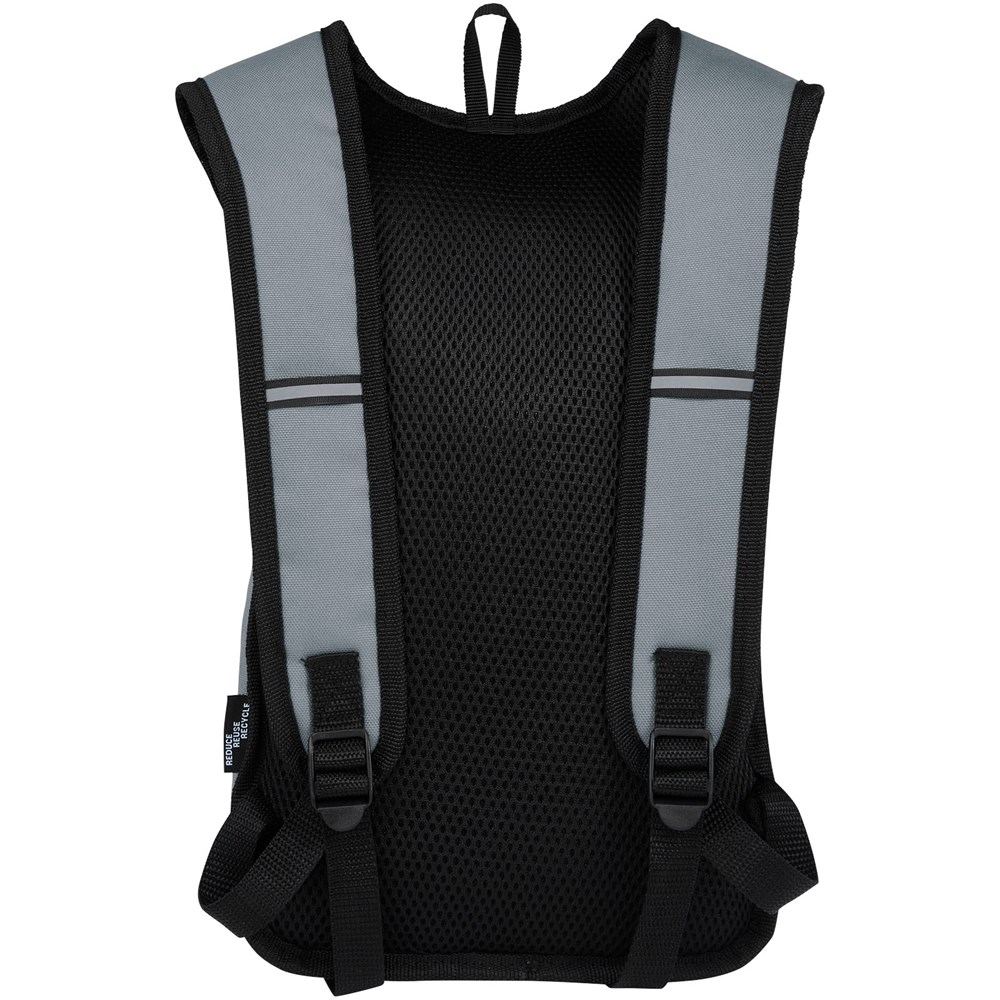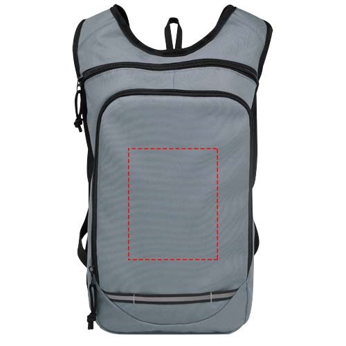 De rugzak van Trails is gemaakt van een 100% GRS gerecyclede en waterafstotende stof, heeft een voorvak met rits en een hoofdvak met rits, en is compatibel met een waterzak. Reflecterende strepen voor zichtbaarheid en mesh achterkant voor draagcomfort, waardoor het een geweldige duurzame keuze is voor buitenactiviteiten.