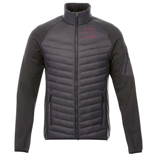 De Banff hybride geïsoleerde jas voor heren - een perfecte combinatie van stijl en prestaties. De stormflap aan de binnenkant zorgt ervoor dat de wind niet door het jack heen komt, en de afgezakte zoom aan de achterkant zorgt voor extra bedekking en warmte. De elastische bies in een contrasterende kleur voegt een stijlvol accent toe en zorgt voor een goede pasvorm. De doffe cire 380T geweven stof van het jack heeft een waterafstotende en donsbestendige afwerking, gemaakt van nylon (38 g/m2). De contraststof is een interlock breisel van polyester en elastaan (245 g/m2) en voegt flexibiliteit en comfort toe. De nepdonsisolatie van polyester zorgt voor lichtgewicht warmte, perfect voor frisse dagen.