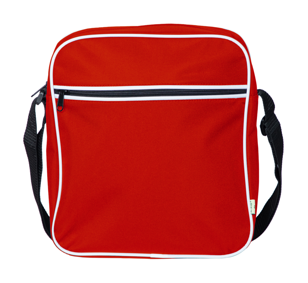 • Stof gemaakt van gerecycled polyester garen • Kleine schoudertas • Witte bies rond voorkant en...meer