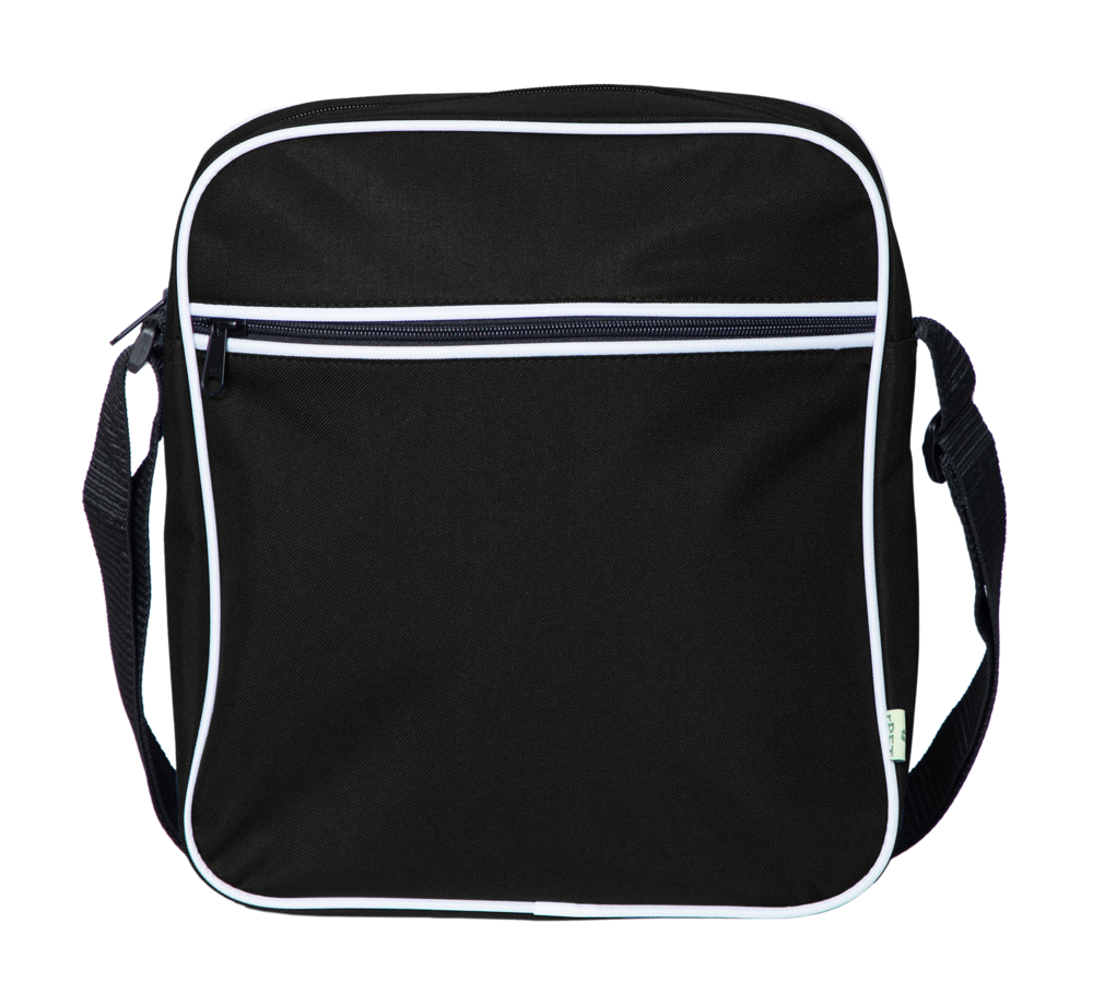 • Stof gemaakt van gerecycled polyester garen • Kleine schoudertas • Witte bies rond voorkant en...meer