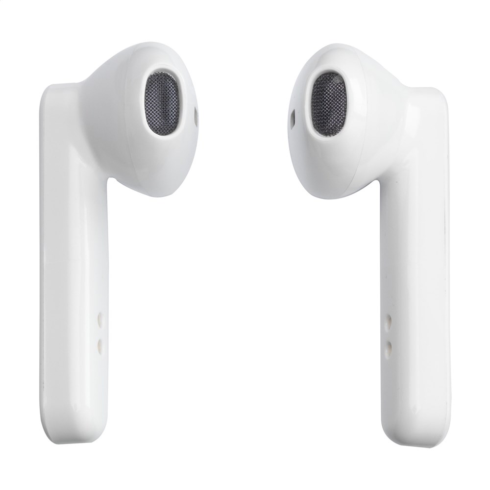 Set met draadloze true wireless oortjes in een oplaadbare opbergcase. De 2 oortjes gebruiken Bluetooth (versie 5.0) voor een soepele verbinding en hebben een batterij van 35 mAh, die een speelduur tot 3 uur mogelijk maakt en binnen ongeveer 1 uur kan worden opgeladen. Zonder bewegingsbeperking naar muziek luisteren en handsfree oproepen beantwoorden. Met uitstekende geluidsweergave en regelbaar volume. Input 5V/1A. Draadloze output: 5V/1A. Bereik tot 10 meter. Inclusief micro-USB oplaadkabel en gebruiksaanwijzing. Per stuk verpakt.