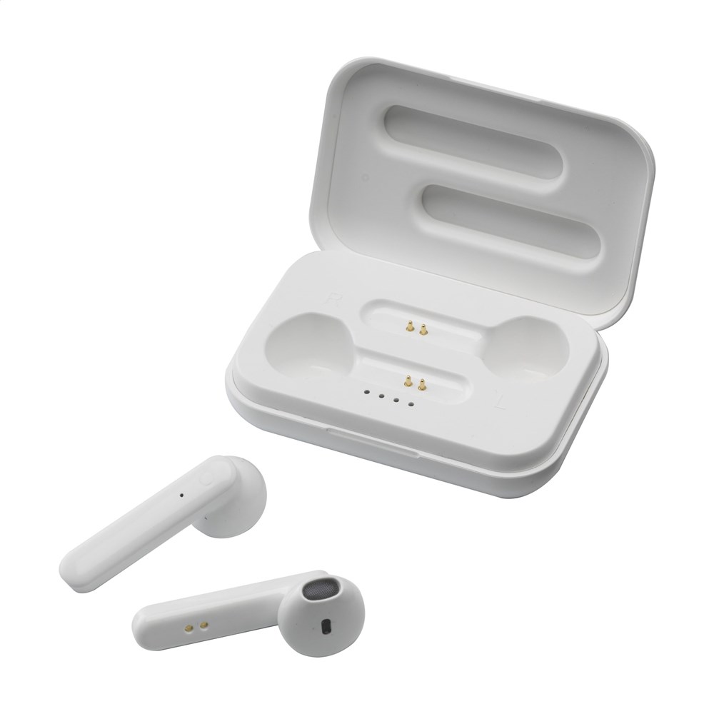 Set met draadloze true wireless oortjes in een oplaadbare opbergcase. De 2 oortjes gebruiken...meer