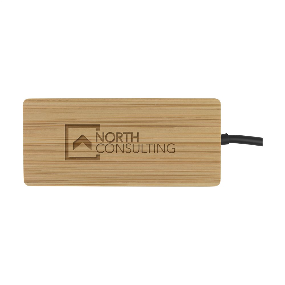 2.0 USB HUB met FSC 100% bamboe behuizing. Voorzien van 1 USB-A poort en 3 USB-C poorten voor het...meer