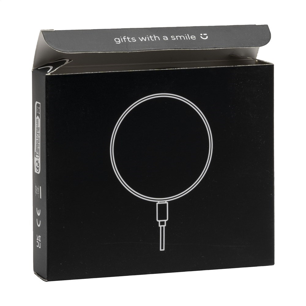 10W draadloze oplader. De behuizing is gemaakt van gerecycled ABS plastic. Compatibel met alle mobiele apparaten die QI draadloos laden ondersteunen (nieuwste generatie Android en iPhone 8 en hoger). Input: 9V/1.1A. Draadloze output: 9V/1.1A 10W. Inclusief USB-C/USB-C oplaadkabel en gebruiksaanwijzing. Het product en de accessoires zijn PVC-vrij. RCS-gecertificeerd. Totaal gerecycled materiaal: 20%. Per stuk verpakt.