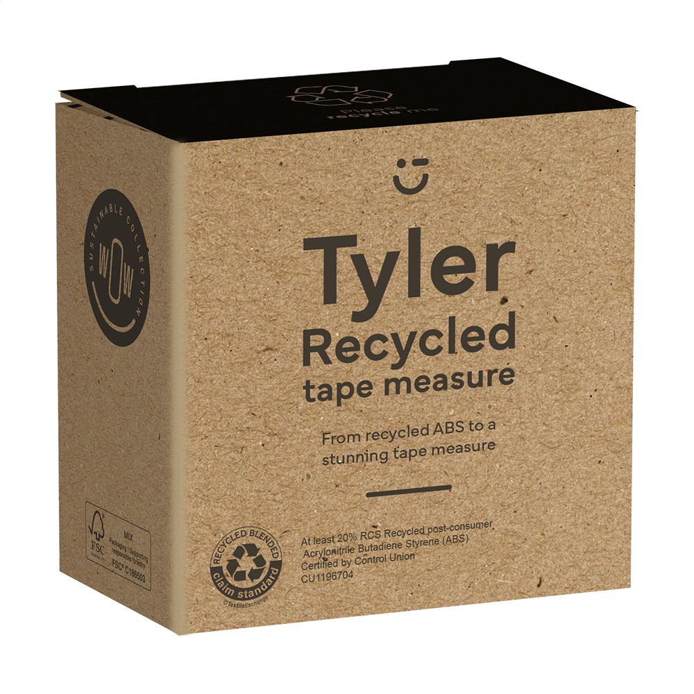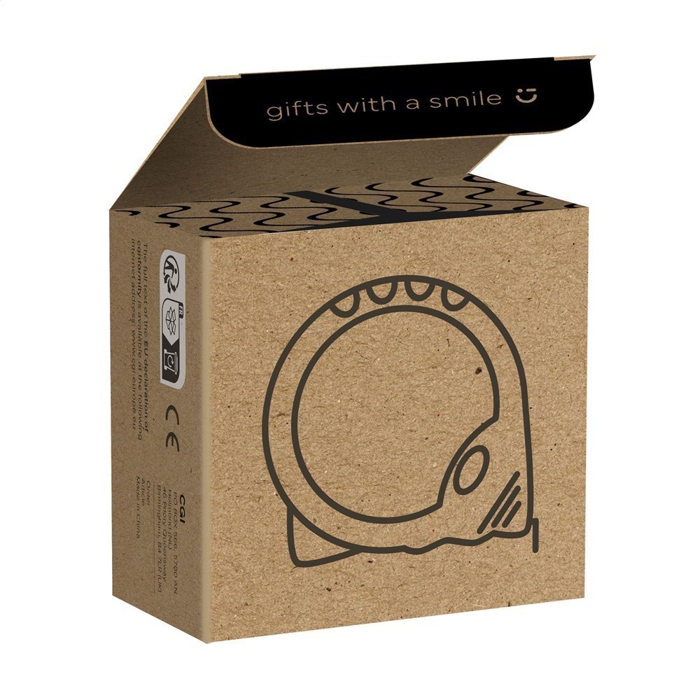 Rolmaat met een behuizing van gerecycled ABS plastic en een hardstalen band met een lengte van 3 meter en een bandbreedte van 1,6 cm. Met aanduiding in centimeters, broekriemclip en polyester polsriem. Geijkt volgens Europese normen. RCS-gecertificeerd. Totaal gerecycled materiaal: 20%. Per stuk verpakt.