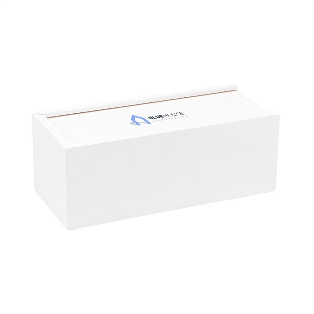 - op deksel (max 25 x 25 mm), lasergravure: Verzending uiterlijk 8 werkdagen na akkoord drukproef - op deksel (max 55 x 35 mm), tampondruk: Verzending uiterlijk 5 werkdagen na akkoord drukproef - op deksel (max 130 x 50 mm), lasergravure: Verzending uiterlijk 8 werkdagen na akkoord drukproef - op deksel midden (max 130 x 50 mm), zeefdruk: Verzending uiterlijk 5 werkdagen na akkoord drukproef - op voorzijde (max 25 x 25 mm), lasergravure: Verzending uiterlijk 8 werkdagen na akkoord drukproef - op voorzijde (max 80 x 30 mm), lasergravure: Verzending uiterlijk 8 werkdagen na akkoord drukproef |