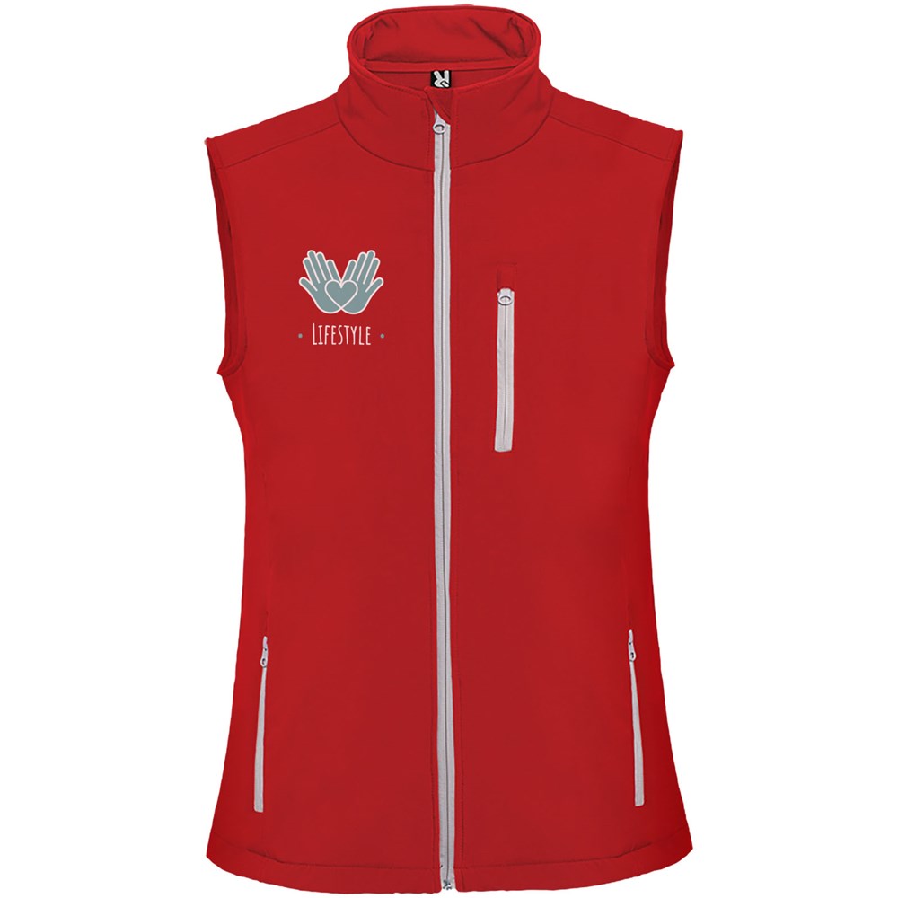 Tweelaags softshellgillet. Contrasterende omgekeerde rits met verzegeld effect, kinbeschermer en trekker. Drie zakken met gecombineerde rits met trekker. Elastisch trekkoord en sluitingen aan de onderkant. Waterafstotend. Winddicht model. Het model is 184 cm en draagt maat L.