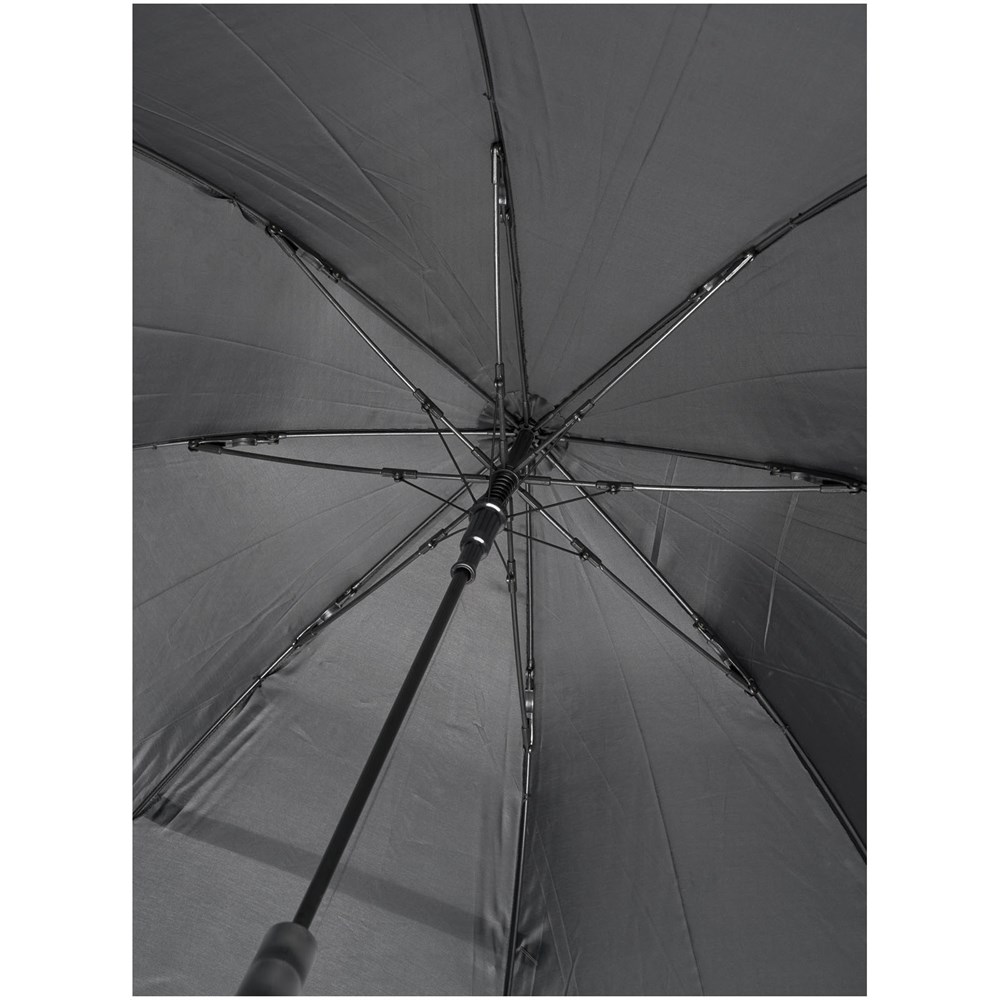 Automatisch openende paraplu met een polyester scherm. Hij heeft een stevige metalen schacht en gepatenteerd hoogwaardig frame volledig uit glasvezel en biedt maximale flexibiliteit bij winderige omstandigheden. Rechte kunststof handgreep, punten en spits. Verkrijgbaar in de meest diverse moderne kleuren en met een groot decoratievlak.