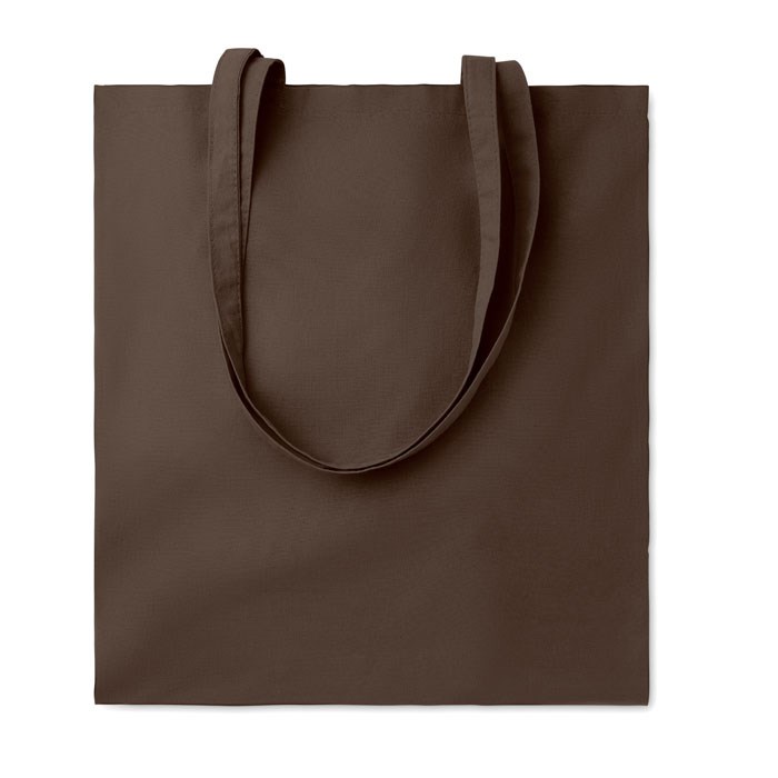 Gekleurde katoenen boodschappentas met lange hengels. 140 g/m².meer