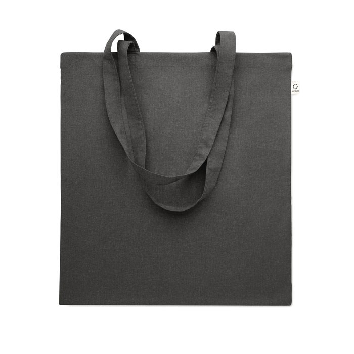 Gerecyclede pre-consumer katoenen boodschappentas (70% gerecycled katoen en 30% RPET) met lange hengsels. 140 gr/m². Dit artikel kan krimpen na het afdrukken.