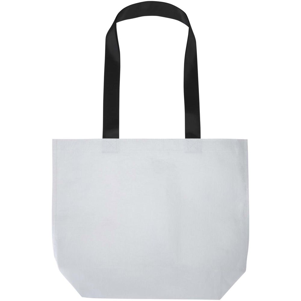 De Duo dubbel gelamineerde totebag met verstevigde bodem is gemaakt van 150 g/m² GRS-gecertificeerd RPET en biedt extra duurzaamheid en waterbestendigheid. De tas heeft een ruim hoofdvak zonder sluiting, stevige verstevigde handgrepen en een brede bodem voor extra inhoud. Ontworpen om tot 10 kg te dragen – een stijlvolle en betrouwbare keuze voor dagelijkse boodschappen, beurzen of promotionele evenementen. Inhoud: 18 liter.