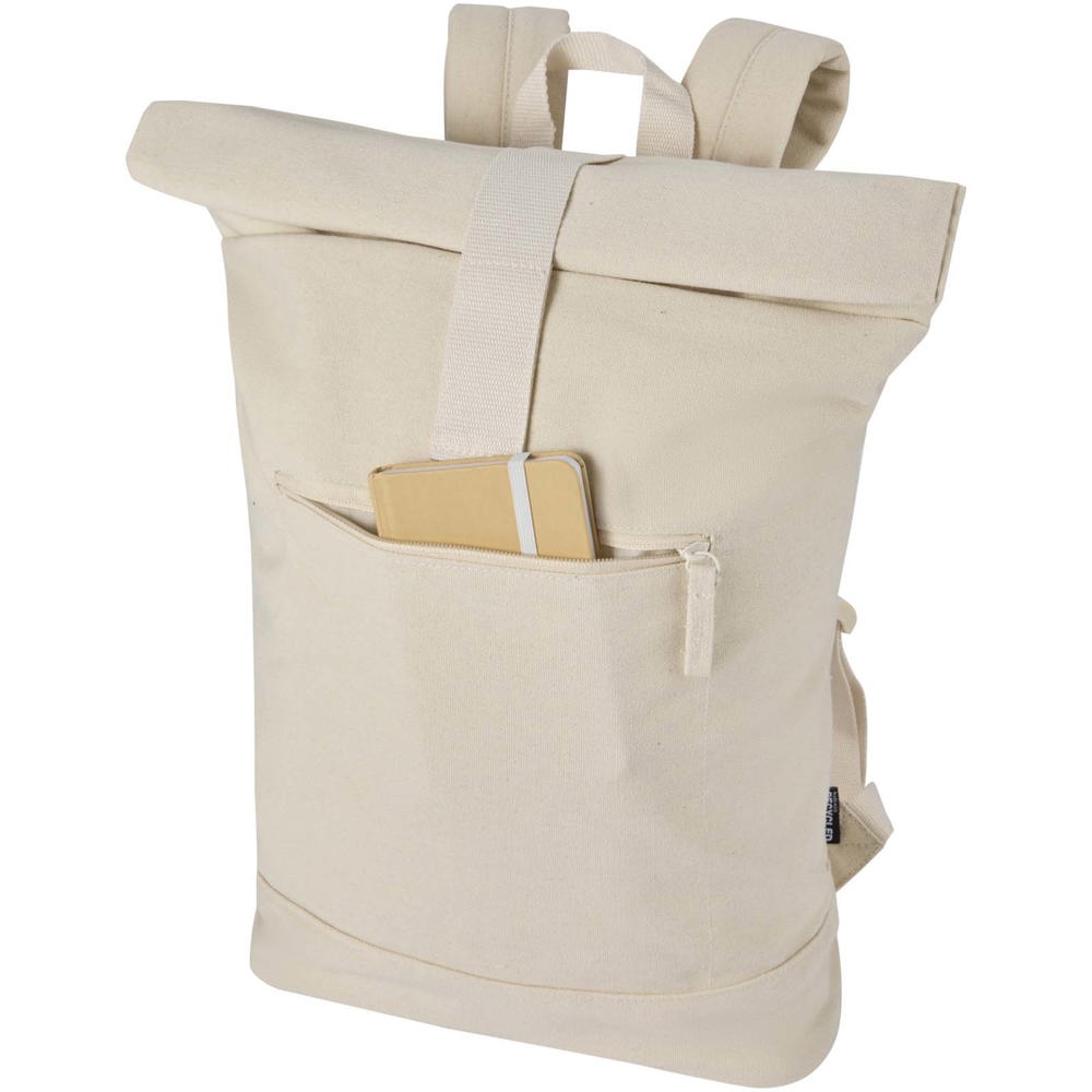 De Recanvas rolltop rugzak is gemaakt van GRS-gecertificeerd, waterafstotend gerecycled canvas met een bijpassende RPET-voering. Ontworpen voor dagelijks gebruik en veelzijdigheid, met een gevoerd laptopvak tot 14", een voorvak met ritssluiting, ademende mesh rugzijde en verstelbare schouderbanden voor comfort. De rolltop-sluiting biedt extra ruimte voor je spullen – ideaal voor woon-werkverkeer, reizen of outdoor avonturen. Inhoudsvolume: 16 liter.