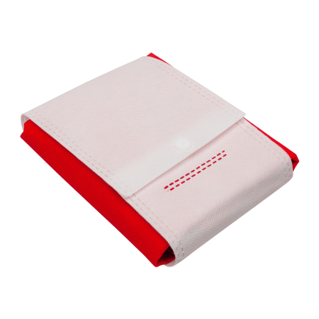 Deze opvouwbare boodschappentas (80 gr/m²) past in elke zak en sluit handig af met een drukknoop (360×410×80 mm).