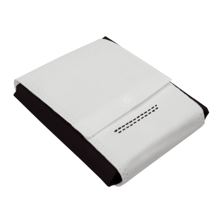 Deze opvouwbare boodschappentas (80 gr/m²) past in elke zak en sluit handig af met een drukknoop (360×410×80 mm).