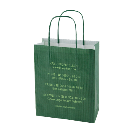 Papieren tas in 11 kleuren, inclusief goud en zilver, met gedraaide hengsels in kleur van de tas, 180x70x220 mm, 90 gr/m2