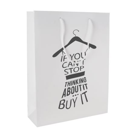 Glans gelamineerde papieren tas 400x120x360 mm met koord-hengsels in de kleur wit. 170 gr/m2