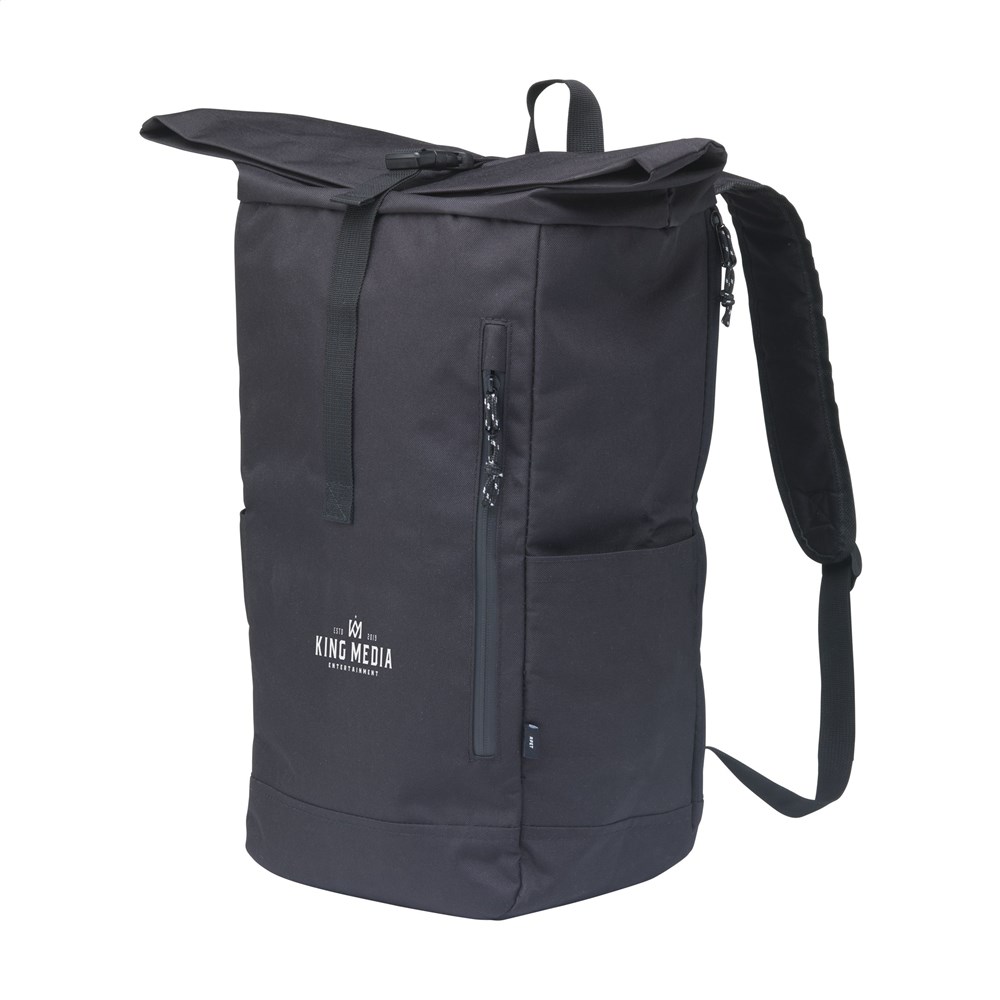 Praktische, stevige en waterafstotende urban ‘roll-top’ cooler rugzak van RPET-polyester. De rugzak heeft een groot binnenvak met een speciaal koelcompartiment. Het koelvak is snel bereikbaar via de bovenzijde van de tas of via een praktische en waterdichte rits aan de achterzijde. De ideale tas voor outdoor activiteiten, picknicks and food-delivery. Inclusief ritsvak aan de voorzijde, 2 zijvakken, foam rugzijde met gewatteerde, verstelbare schouderriemen, draaglus en een rolsluiting met handig kliksysteem aan de bovenzijde. Inhoud ca. 30 liter.