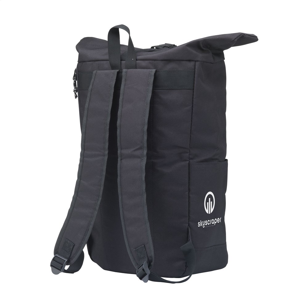 Praktische, stevige en waterafstotende urban ‘roll-top’ cooler rugzak van RPET-polyester. De...meer