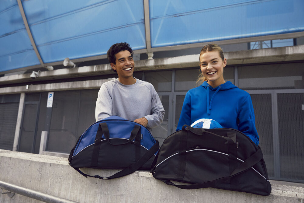 Ruime, duo kleur sporttas voor extra herkenbaarheid. De tas heeft een hoofdcompartiment, een kleiner compartiment aan de voorzijde en een mesh zak aan de zijkant voor bijvoorbeeld een flesje. Afmetingen en volume: 50x30x25cm ≈ 35L