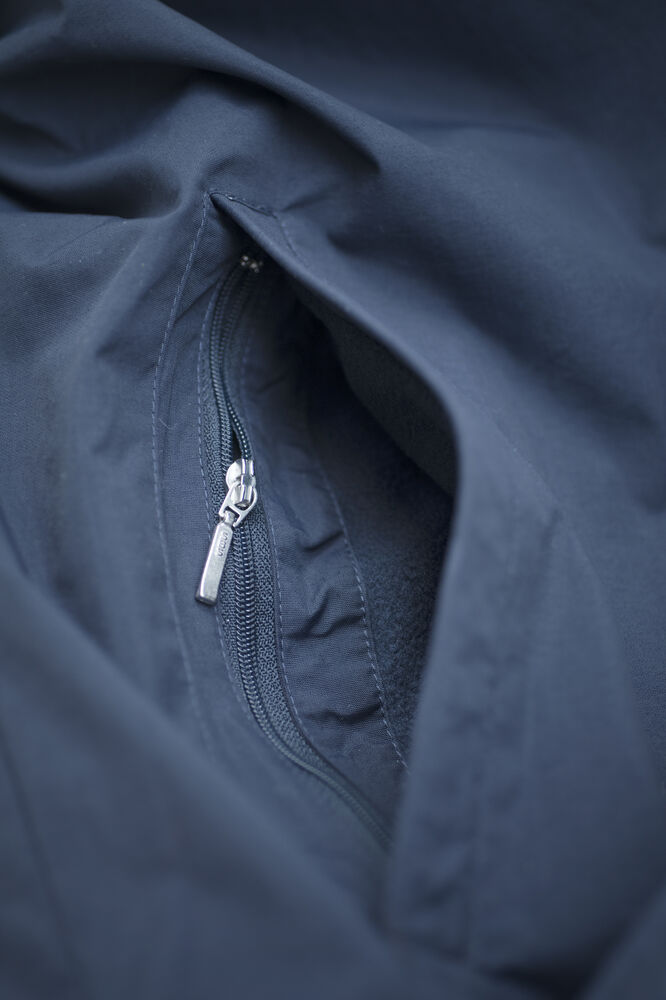 Moderne, unisex jas met fleece voering gemaakt van hoogwaardig materiaal met PU-coating voor bescherming tegen wind en water. De jas heeft een eigentijdse uitstraling dankzij de moderne pasvorm en het hedendaagse design met contrasterende elementen aan de binnenkant van de mouwen en onderaan de jas. De jas is voorzien van twee steekzakken met daaronder zakken met rits en een binnenzak met rits. De jas is gemakkelijk te veredelen dankzij de drukkersrits aan de binnenzijde.